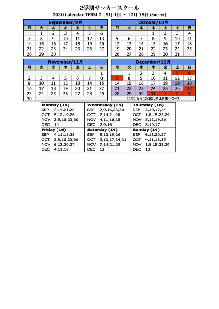 スタート時からの回数分で学期制(日本人学校スケジュールに準ず)