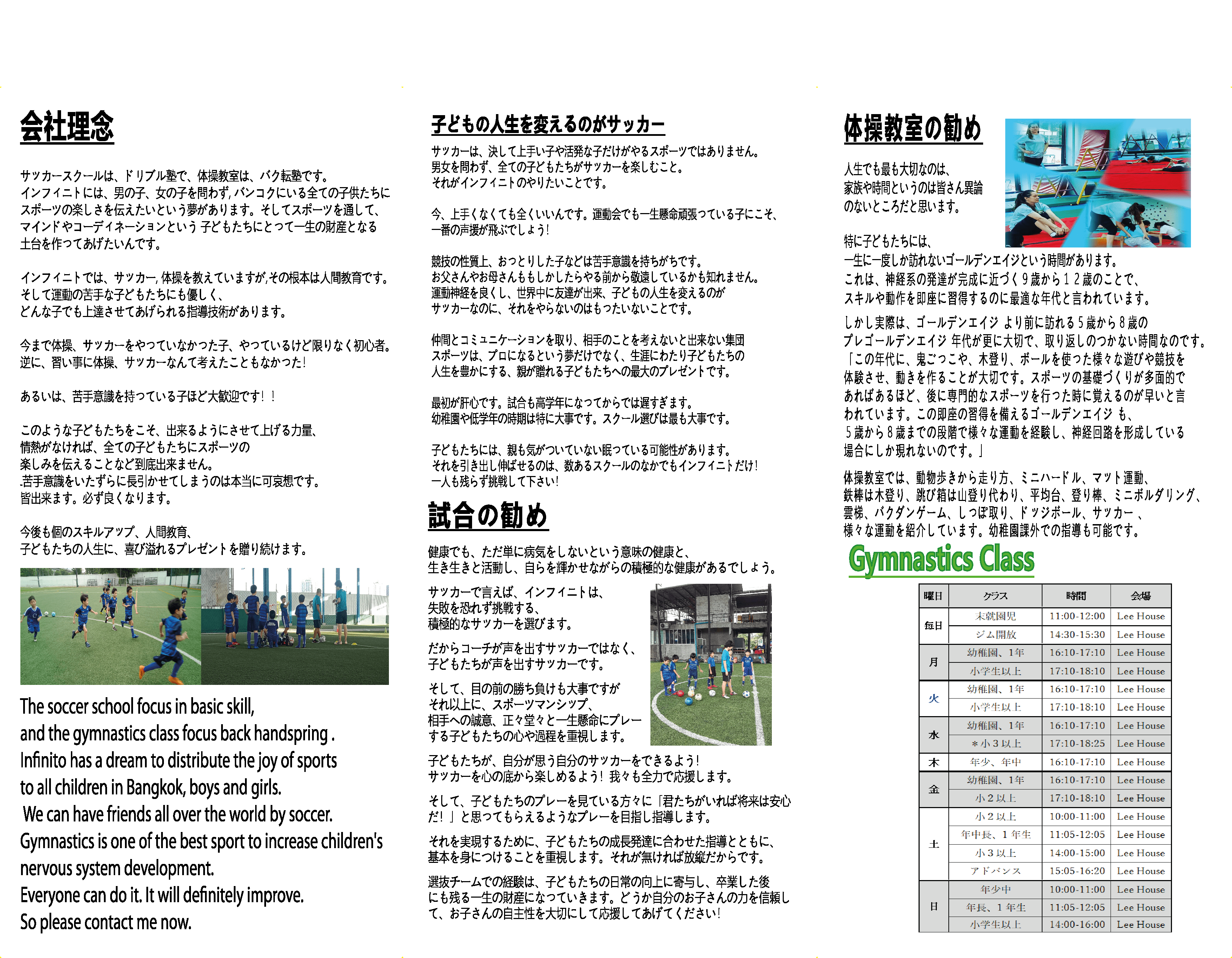 We will improve mentally, technically and physically 『Shin-Gi-Tai』through soccer and gymnastics to children.