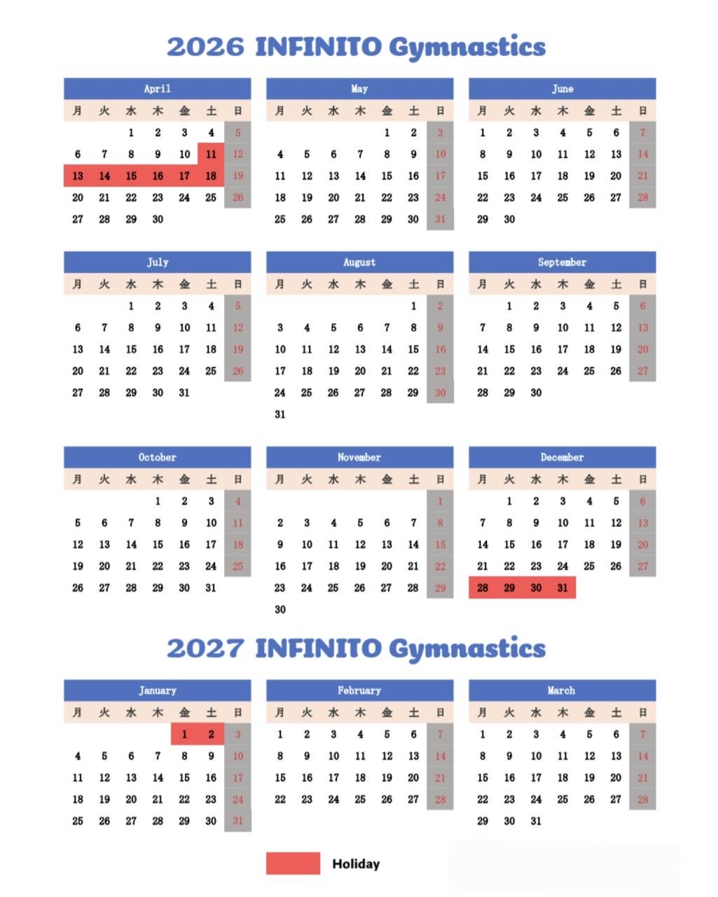 ■体操クラス開始日